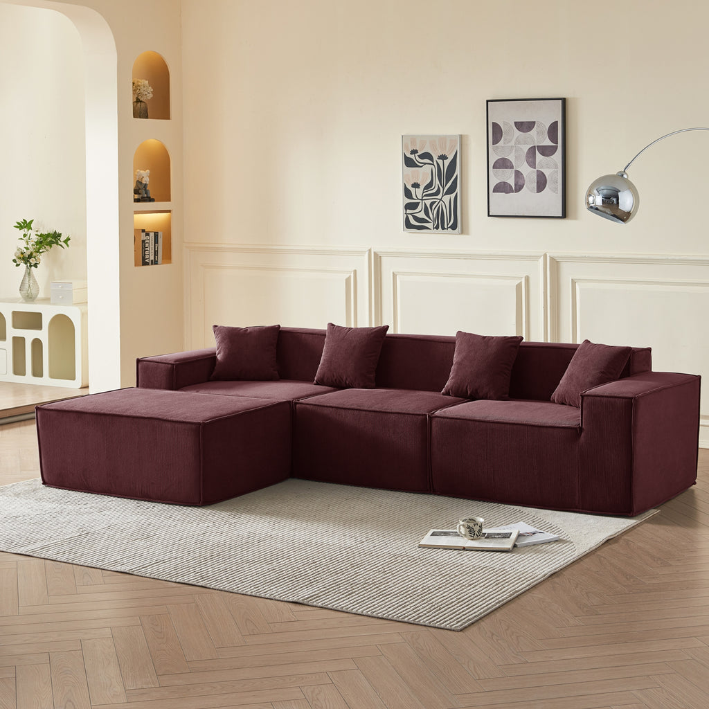 Tribeca 3 Seater Corduroy Sofa with Ottoman - Maroon