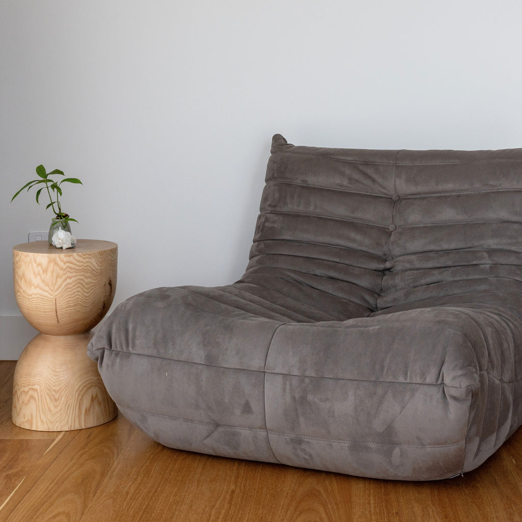 - Material: High-density structural foam, upholstered in a suede-like microfibre for a soft, luxurious feel.